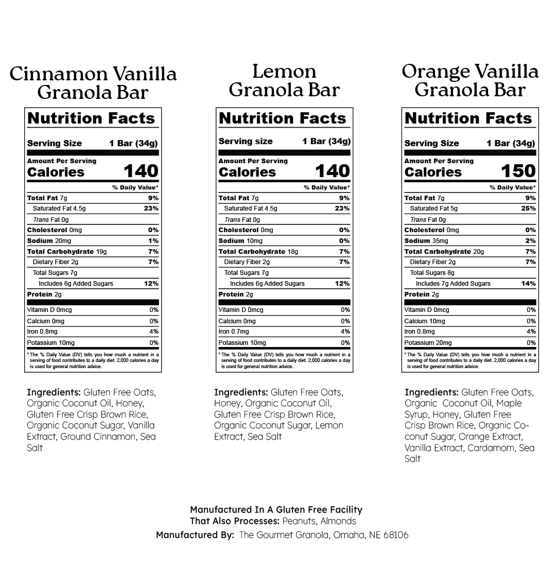 An 18-bar bundle featuring a 6-pack box of each of our Cinnamon Vanilla, Lemon, and Orange Vanilla granola bars—made without gluten, dairy, soy, refined sugars, or seed oils.